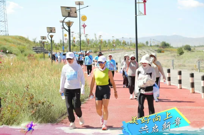 头屯河谷森林公园的壮美风光为徒步之旅增添了别样魅力,青绿的草坪、徒步道两旁的花朵,与员工们鲜艳的队服相互映衬,构成了一幅充满活力的画卷。