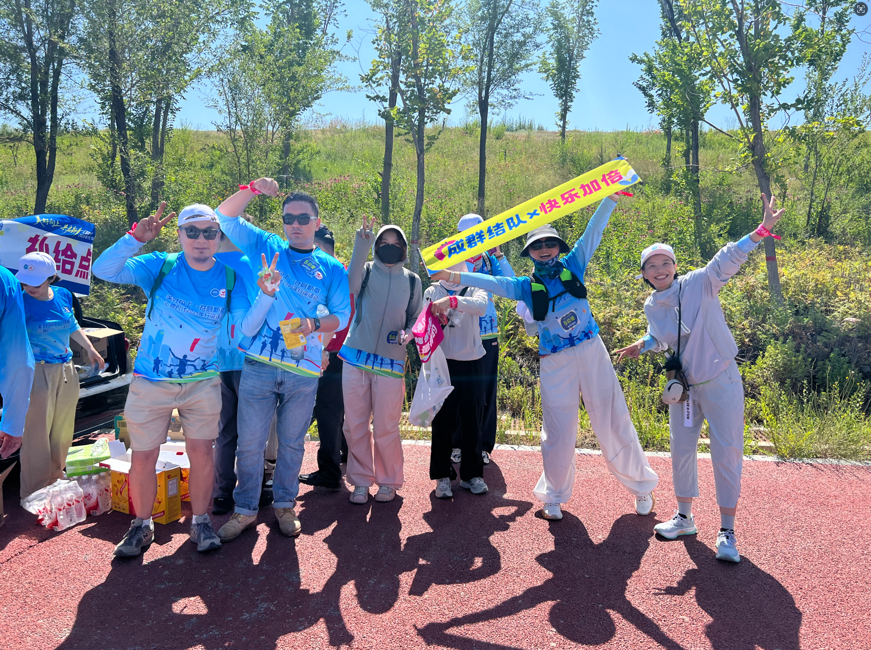 为保障徒步活动顺利进行,后勤保障团队提前抵达现场,在沿途精心设置了多个补给点。
